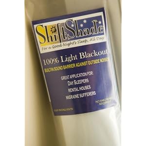 The ShiftShade is Daytime Darkness! Our Patent Pending Window Covering creates 100% Blackout by using quality Blackout Fabric that is suported in your window with 3 fiberglass rods that create a light seal around the edges that allows zero light to enter room. These rods are easily trimmed to fit window by customer. Included are vinyl caps that protect the window casement.